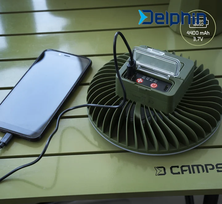 Η Delphin VENTIX είναι ο ιδανικός σύντροφος για κάθε εξόρμηση στη φύση. Συνδυάζει σε μία συσκευή ισχυρό φωτισμό κάμπινγκ με ανεμιστήρα τριών ταχυτήτων, προσφέροντας άνεση τόσο τις ζεστές ημέρες όσο και τις νύχτες. Επιπλέον, χάρη στη θύρα USB-A λειτουργεί και ως φορητό power bank 4400 mAh, ώστε να φορτίζεις τις συσκευές σου.