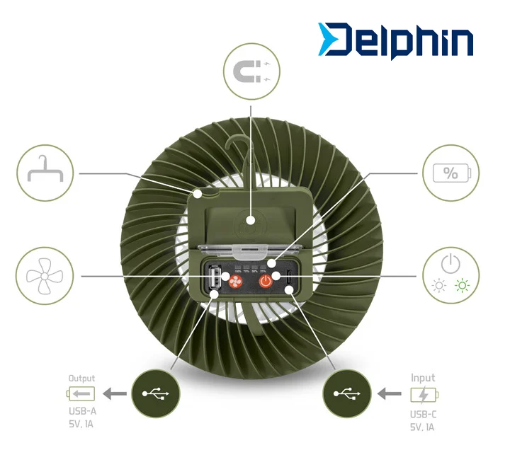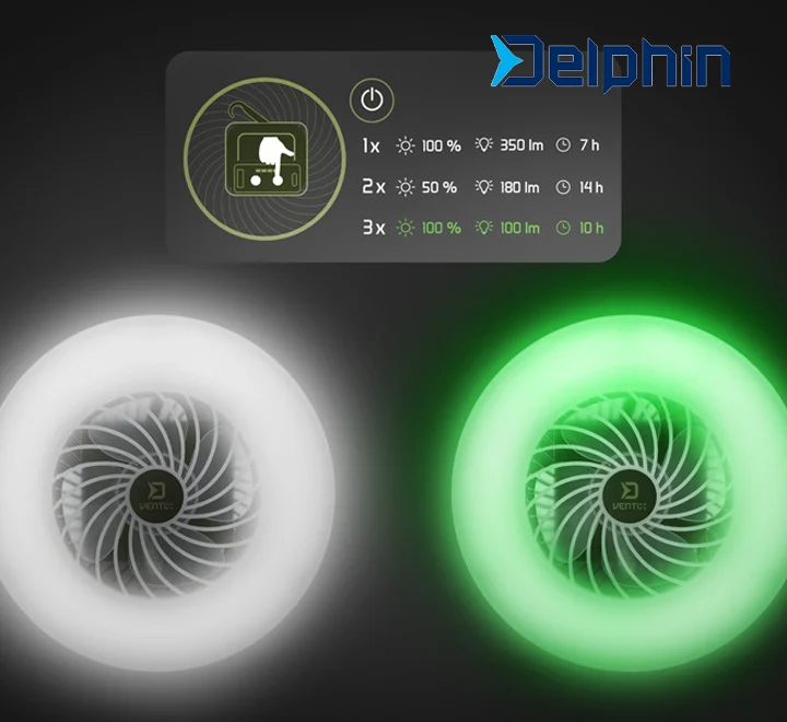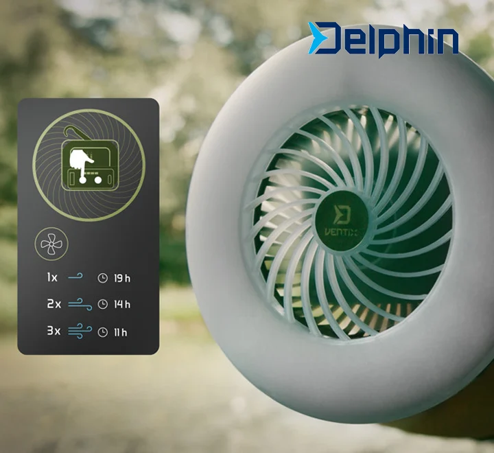 Με το Delphin VENTIX έχεις μαζί σου έναν πολυλειτουργικό εξοπλισμό 3-σε-1! Φως, αέρα και ενέργεια, έτοιμο να σε στηρίξει σε κάθε περιπέτεια.